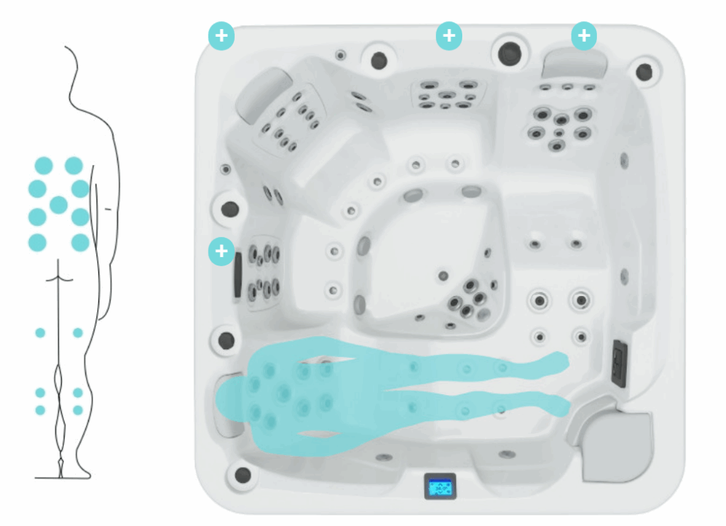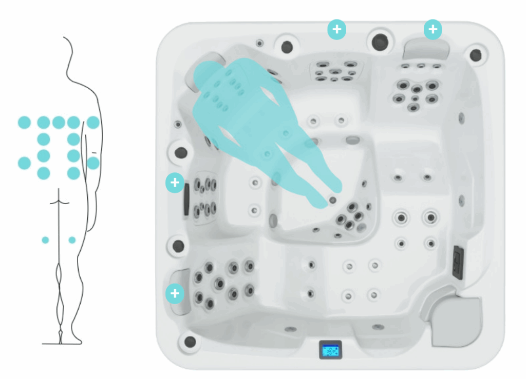 5 positions | 216 x 216 x 90 cm | 65 jets