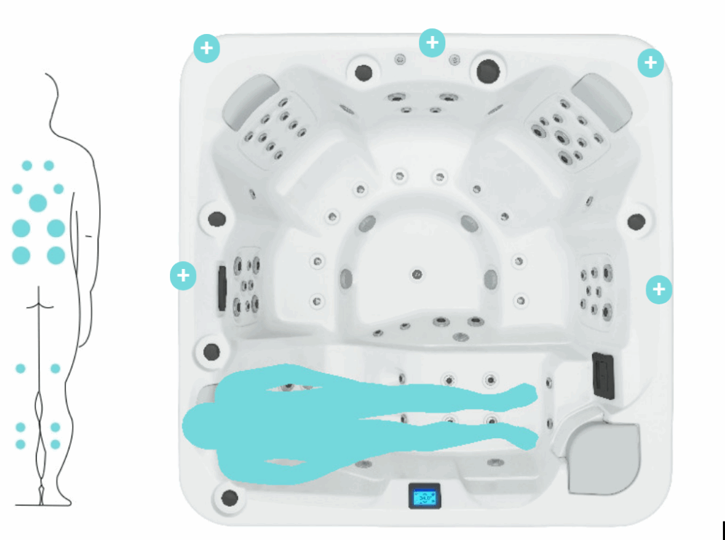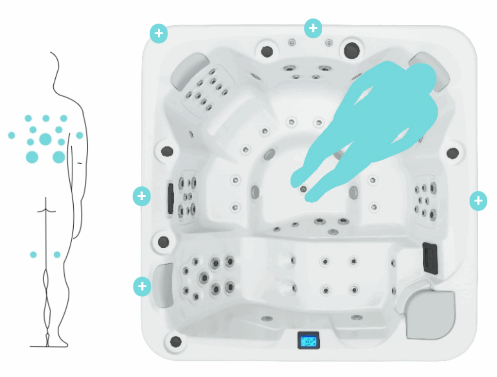 Its ergonomic layout and high-performance hydromassage system, with 60 water jets and 10 air injectors, guarantee a full-body massage, relaxing and therapeutic.
