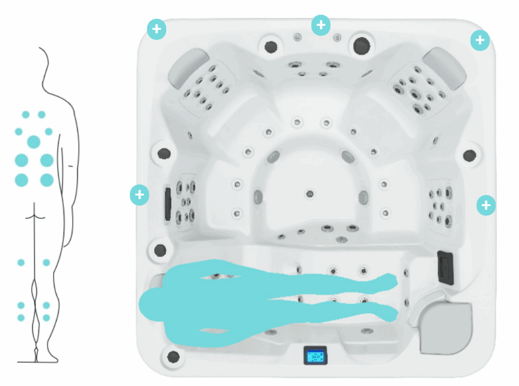 Enjoy 60 hydrotherapy massage jets and 10 air injectors that offer a relaxing massage and a unique hydrotherapy experience. Equipped with 4 independent pumps—2 for water jets and 1 for air bubbles—the Soft hot tub guarantees exceptional aquatic therapy.